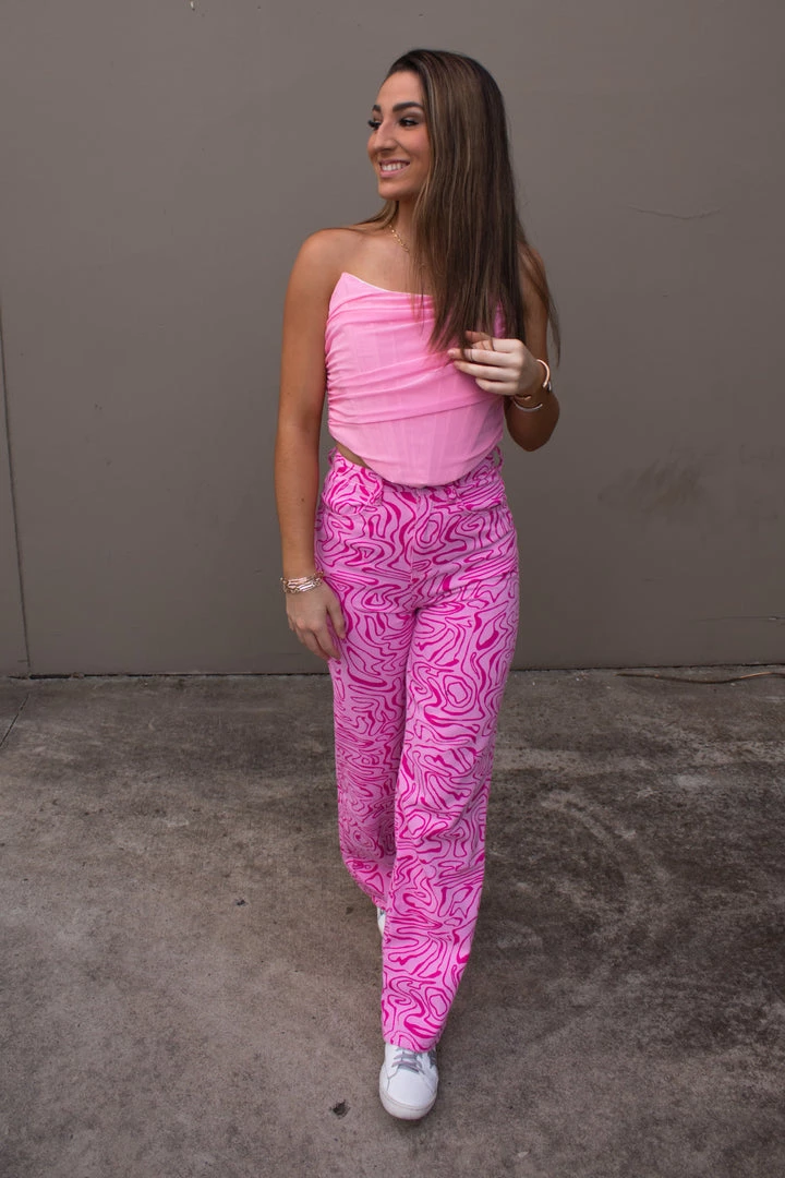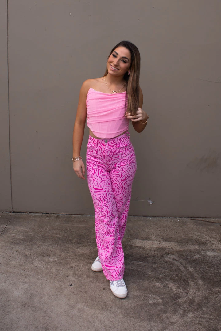 Adele B Pink Mesh Corset Top Women’s Clothing