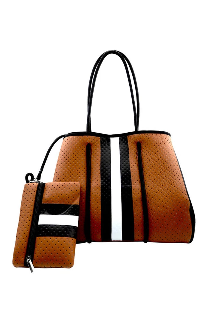 Beauty Stash Black And Brown Stripe Neoprene Tote Bag