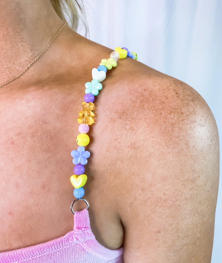 Blue Blush Pink Beaded Gummy Bear Strap Knit Dress