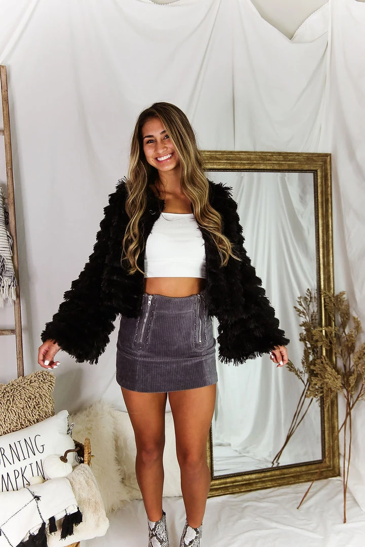 Blue Blush Women’s Clothing Black Bell Sleeve Furry Crop Jacket