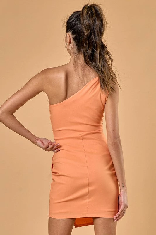 Blue Blush Women’s Clothing Neon Orange One Shoulder Mini Dress
