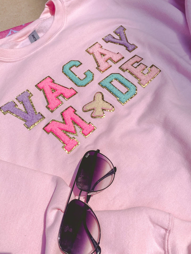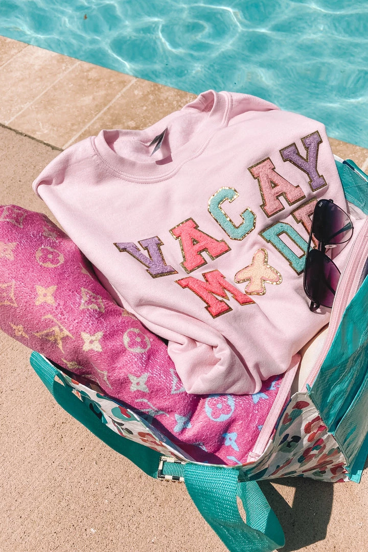Dash Forward Pink Vacay Mode Letter Patch Crewneck Women’s Clothing