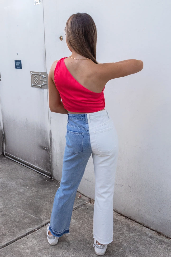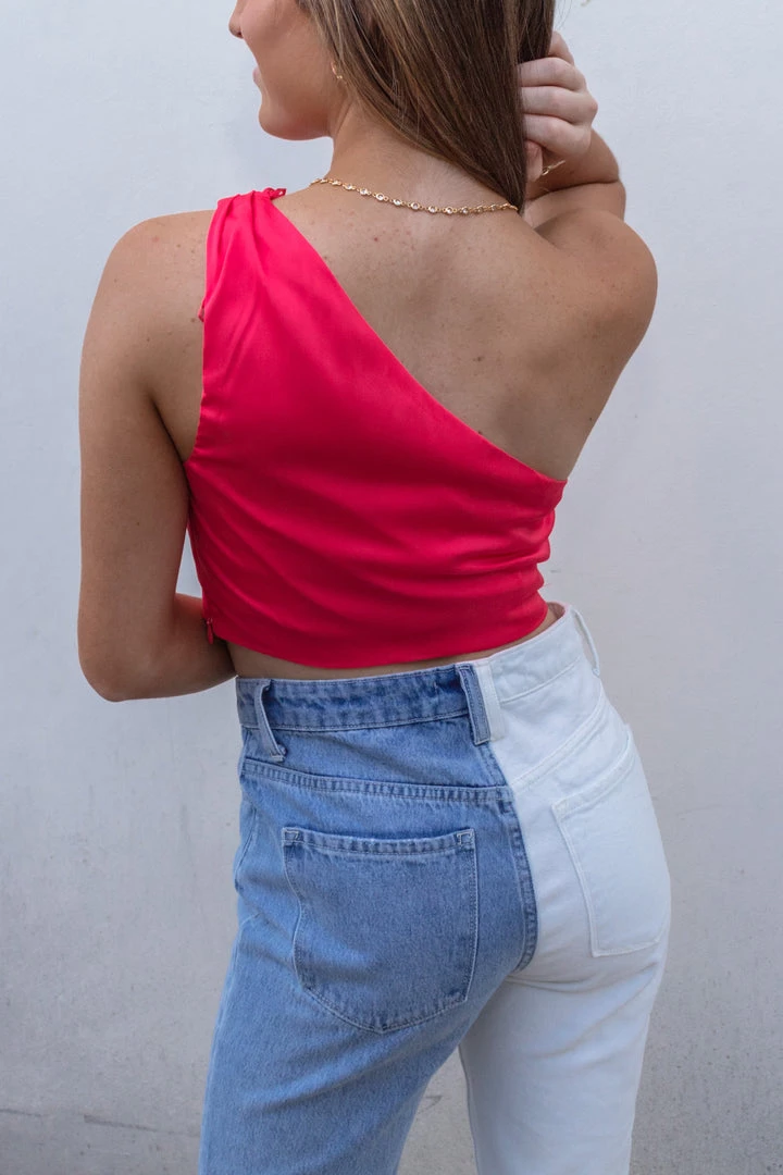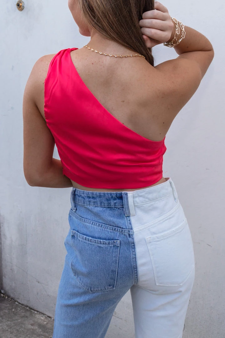 Do + Be Women’s Clothing Coral One Shoulder Ruched Crop Top