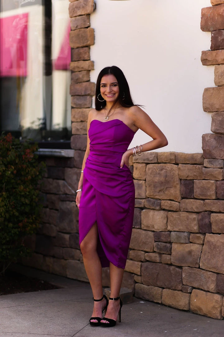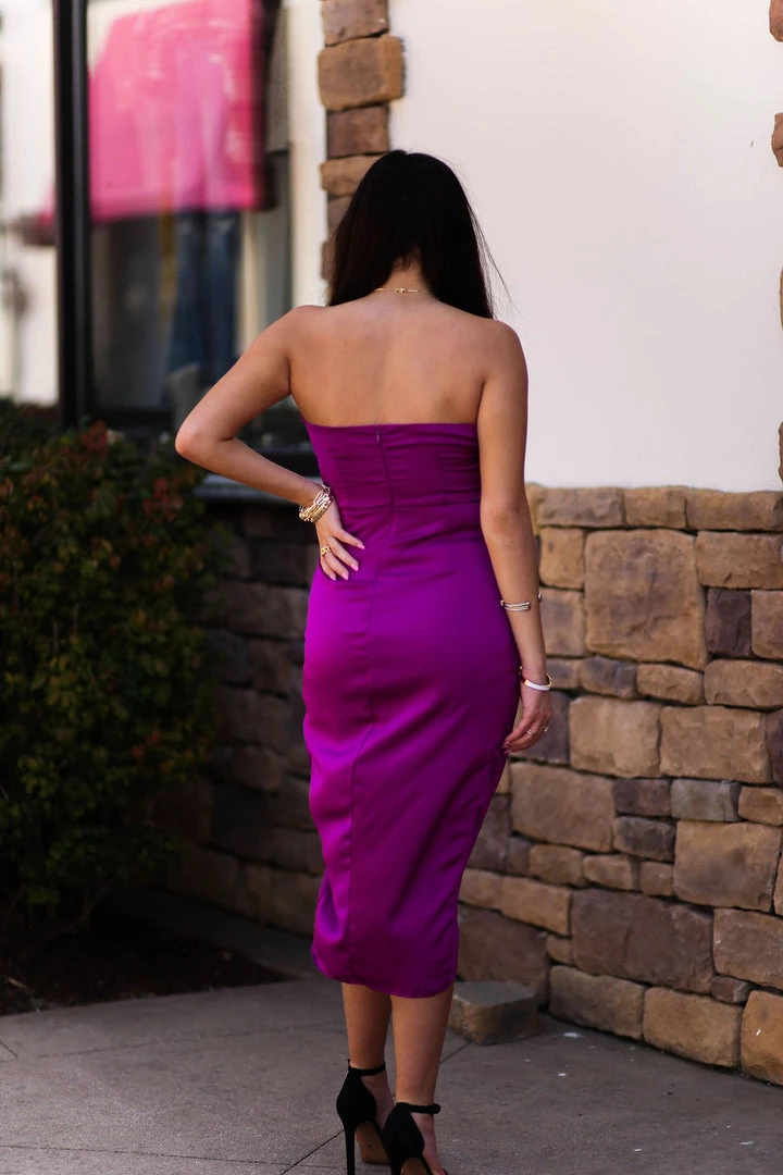Do + Be Women’s Clothing Orchid Purple Strapless Silk Midi Dress