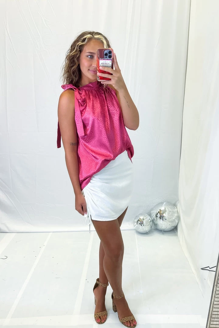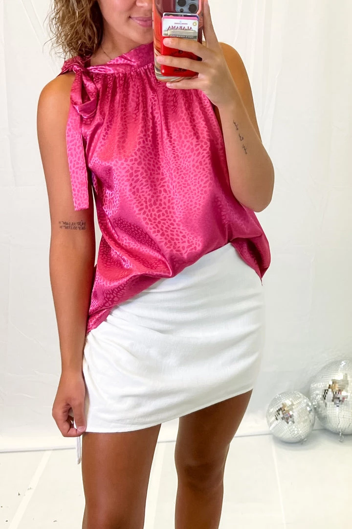 First Love Pink Leopard Satin Halter Neck Tie Tank Top