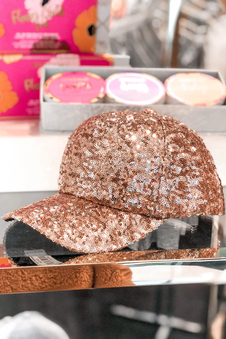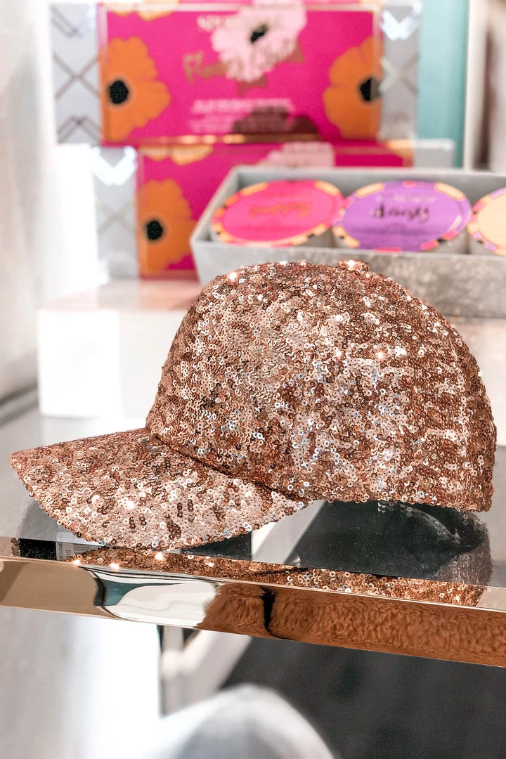 Golden Stella Rose Gold Sequin Baseball Hat Women’s Clothing