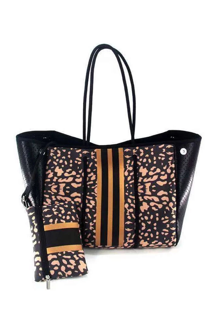 Neoprene tote bags perfect for mom’s on the go, beach bags and travel! Grab yours today. *Hot pink inside!