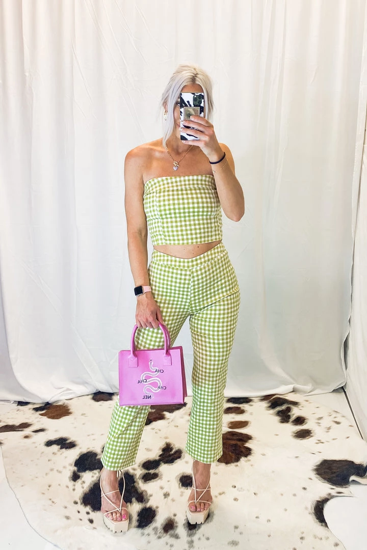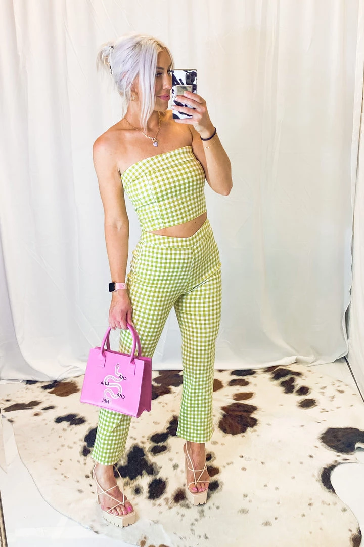 Le Lis Women’s Clothing Green Gingham Corset Tube Top