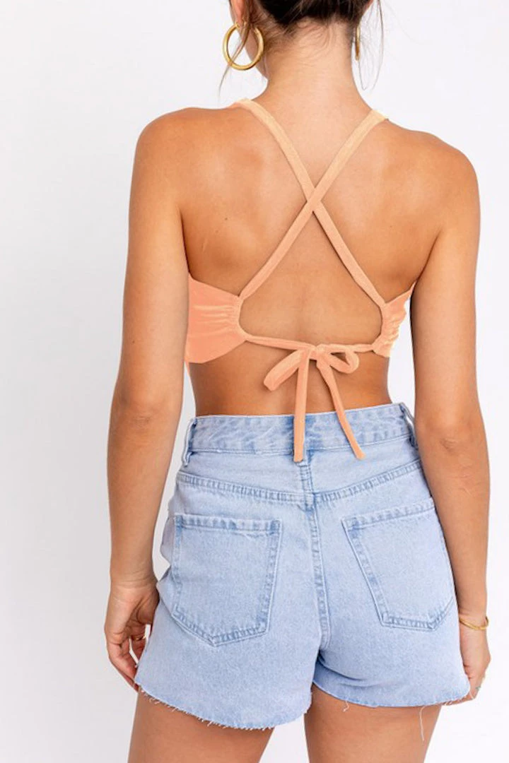 Le Lis Women’s Clothing Peach Criss Cross Bandana Halter Top