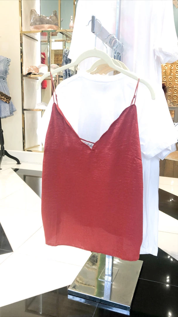 Listicle Women’s Clothing Scalloped V-Neck Tank Top – Maple Red