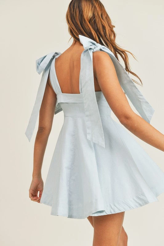 Mable Blue Shoulder Tie Flare Dress Women’s Clothing