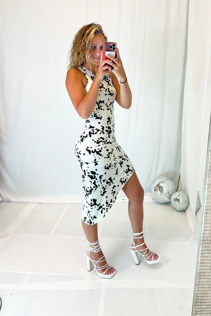 Mittoshop Abstract Print Asymmetrical Midi Dress Women’s Clothing