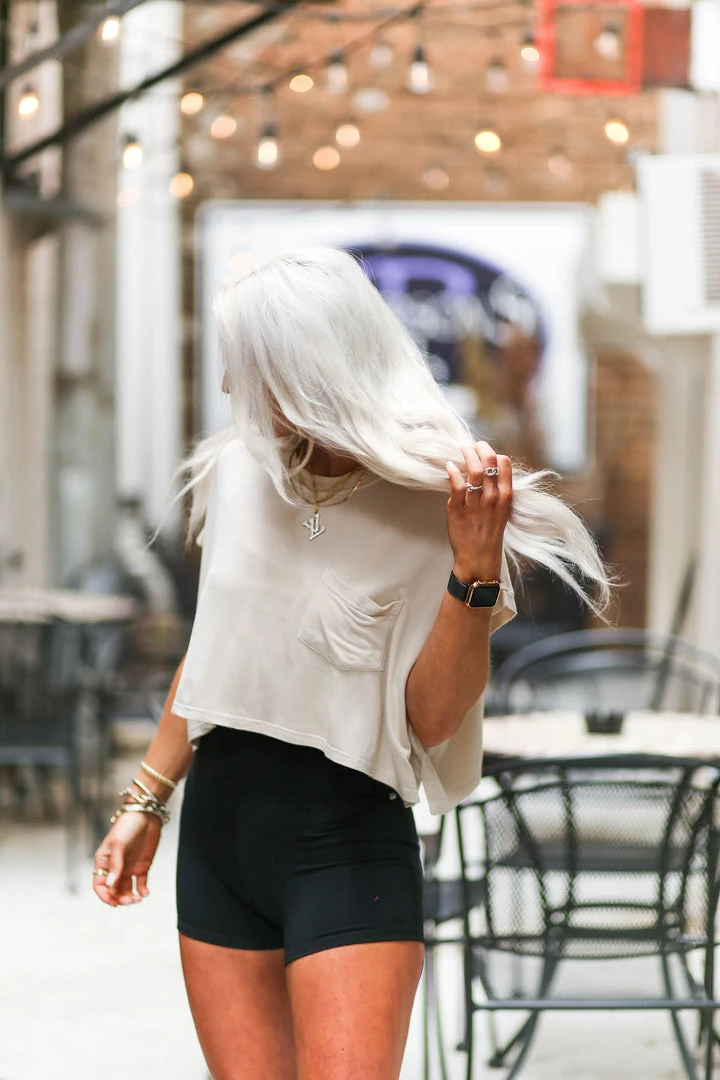 This flirty short-sleeved crop top is designed to wear both while working out or running around town! Soft fabric and a flowy design.