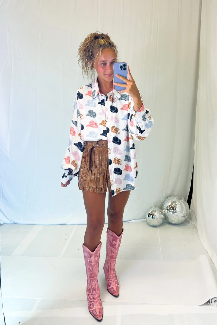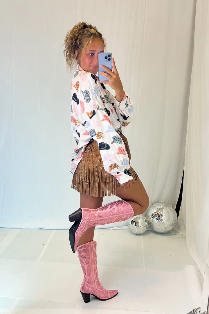 Be the first to review “Nylon Apparel Camel Metallic Belted Fringe Skirt” Cancel reply
