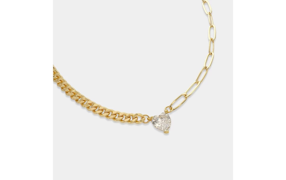 OMG Blings CZ Heart Mixed Chain Pendant Necklace