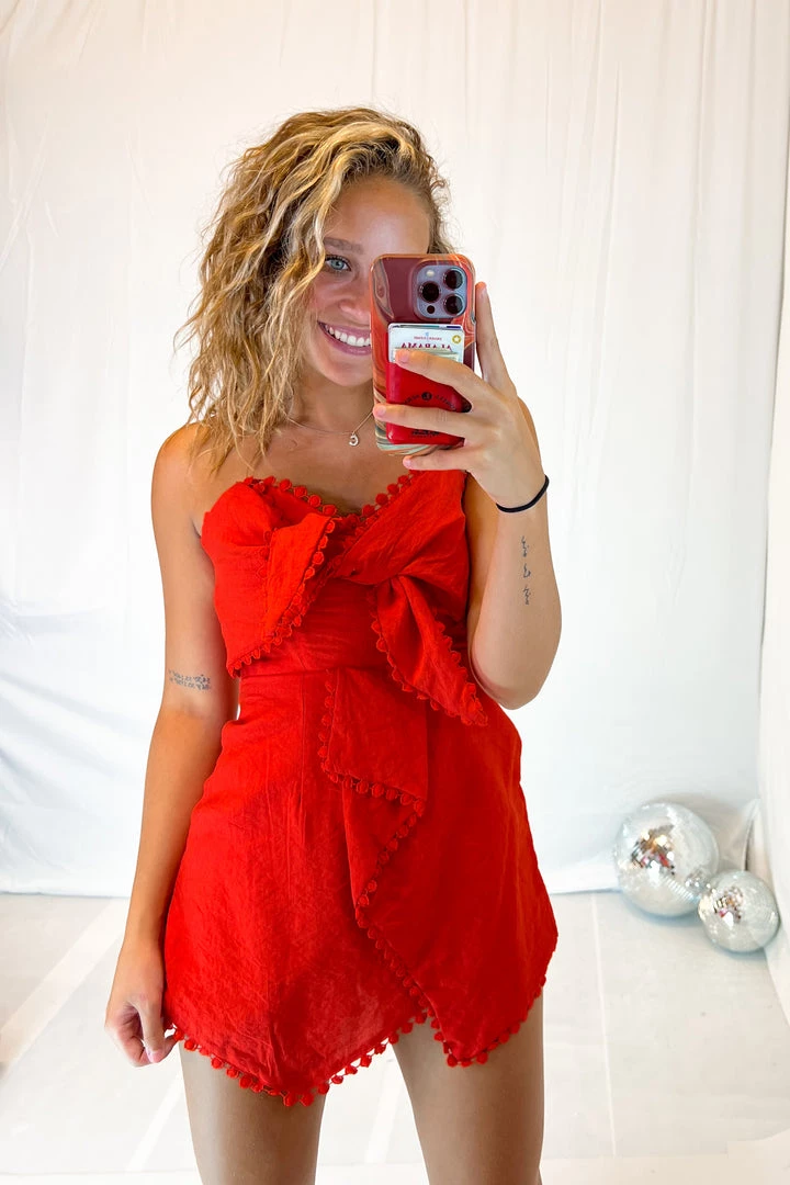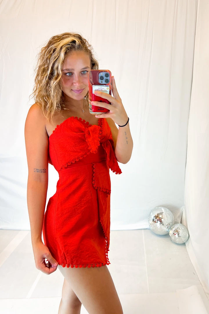 One And Only Collective Women’s Clothing Red Strapless Envelope Romper