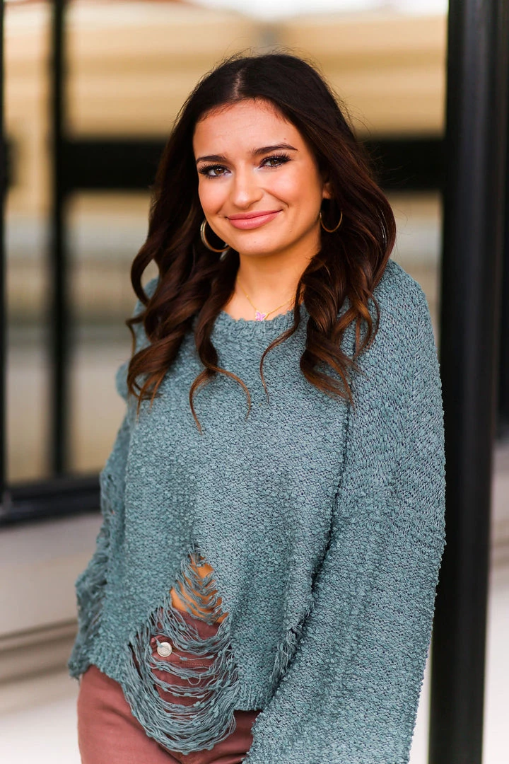 This cute sweater is everything you need for a fun lounge style! Featuring bell sleeves and a distressed hemline. Pair this top with your favorite bell bottoms for a stylish look!