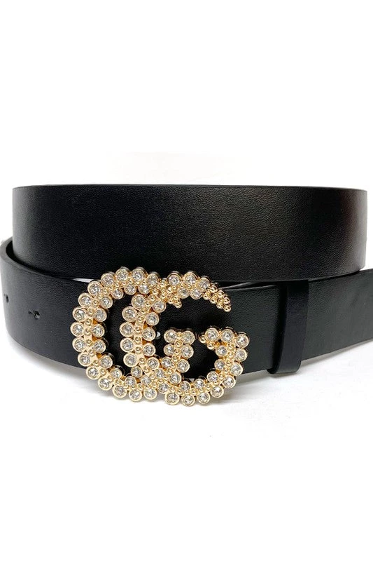 S&J First Rhinestone Faux Leather Belt Women’s Clothing