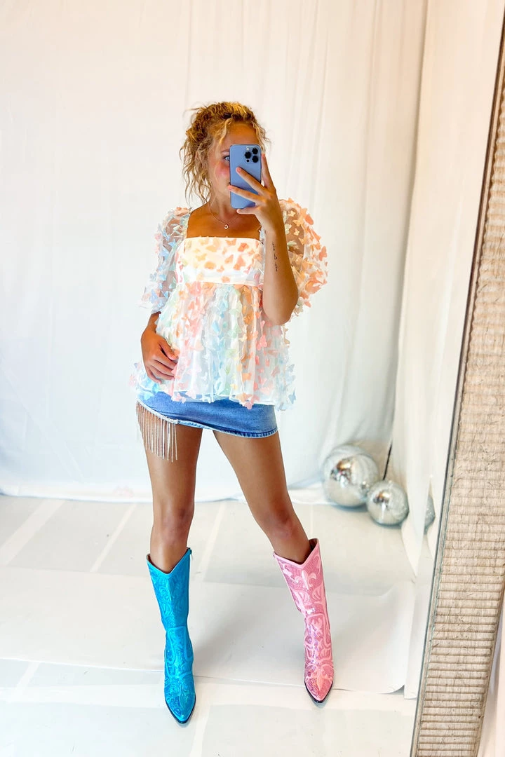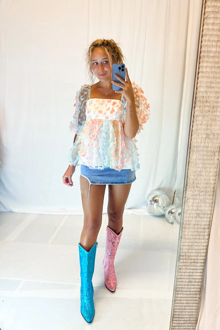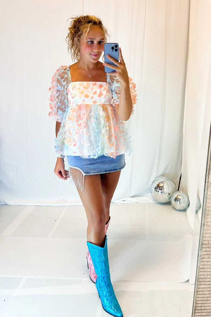 Storia Women’s Clothing Butterfly Puff Sleeve Babydoll Blouse