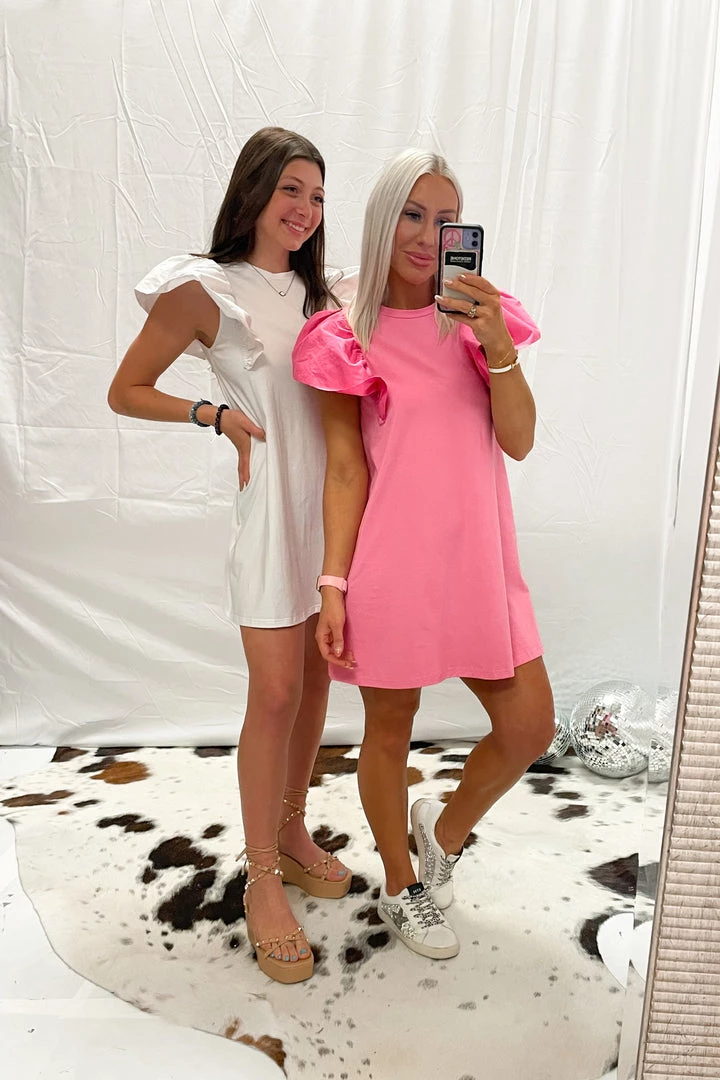 TCEC Women’s Clothing Pink Ruffle Sleeve T-Shirt Dress