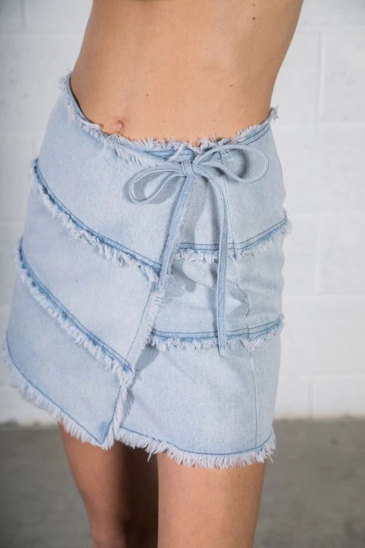 Very J Women’s Clothing Frayed Detail Denim Mini Skort