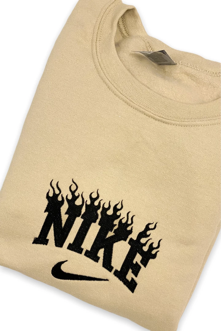 Vintage Distressed Black And Tan Flame Burns Crewneck Sweatshirt Women’s Clothing