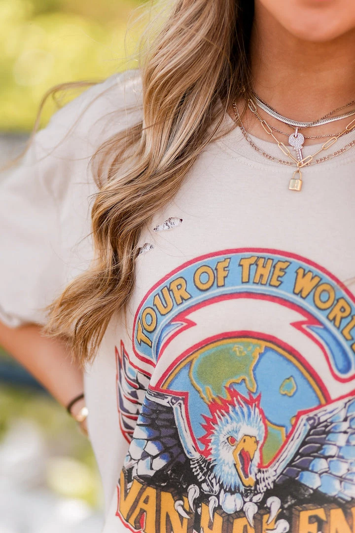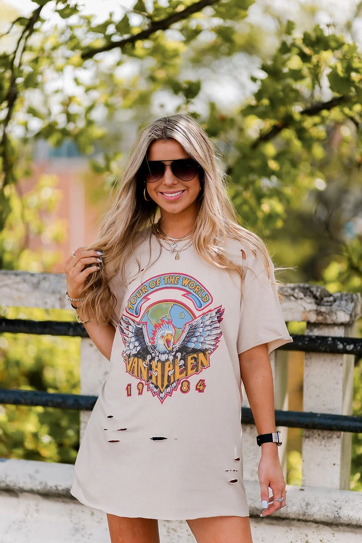 Trendy Led Zeppelin band tee with bleached style and distressing throughout.