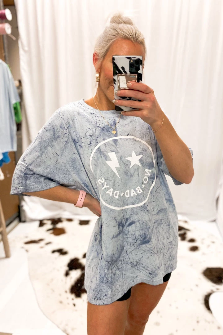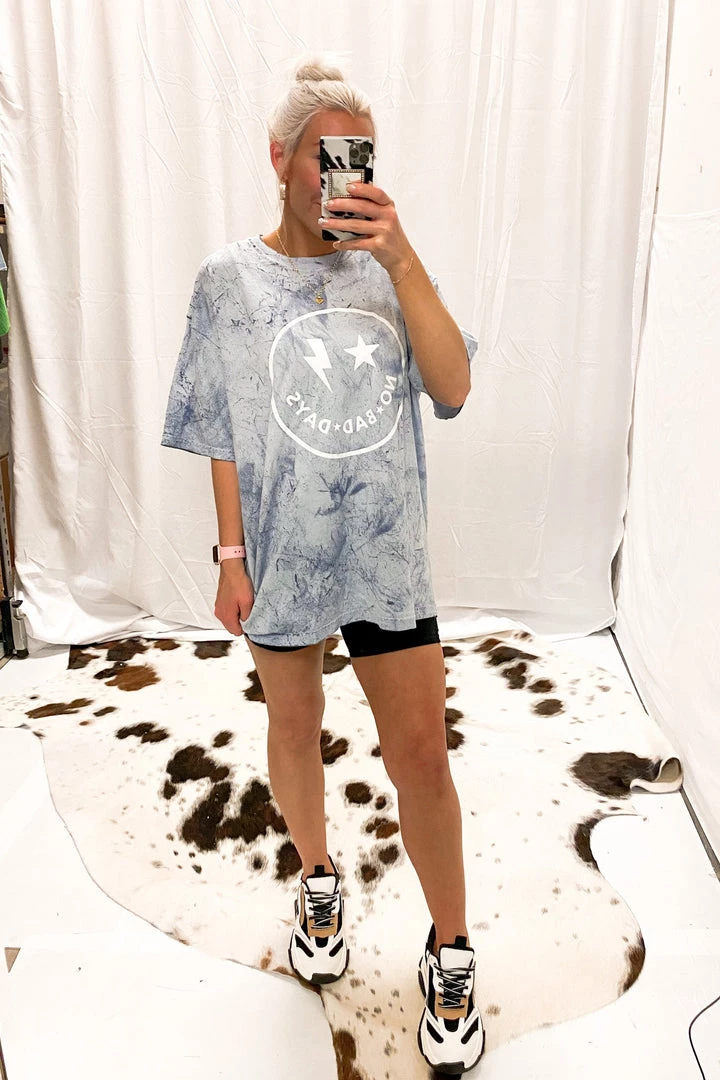 Vintage Distressed No Bad Days Blue Tie Dye Graphic Tee