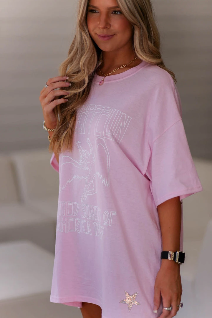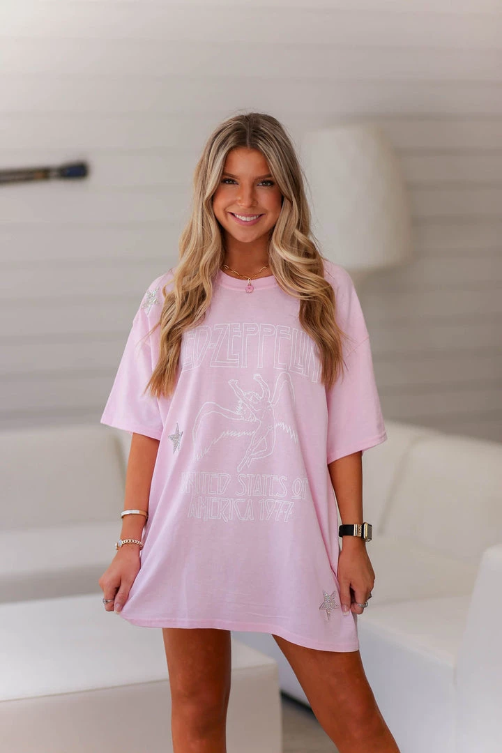Trendy Led Zeppelin band tee with rhinestone stars.