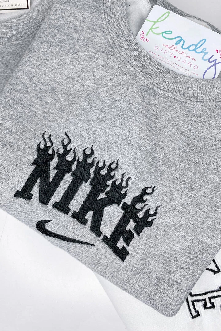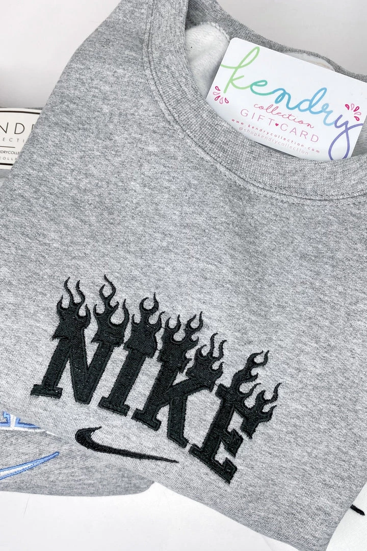Vintage Distressed Women’s Clothing Black And Grey Flame Burns Crewneck Sweatshirt