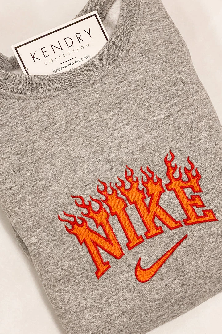 - Color: Orange flame grey crewneck