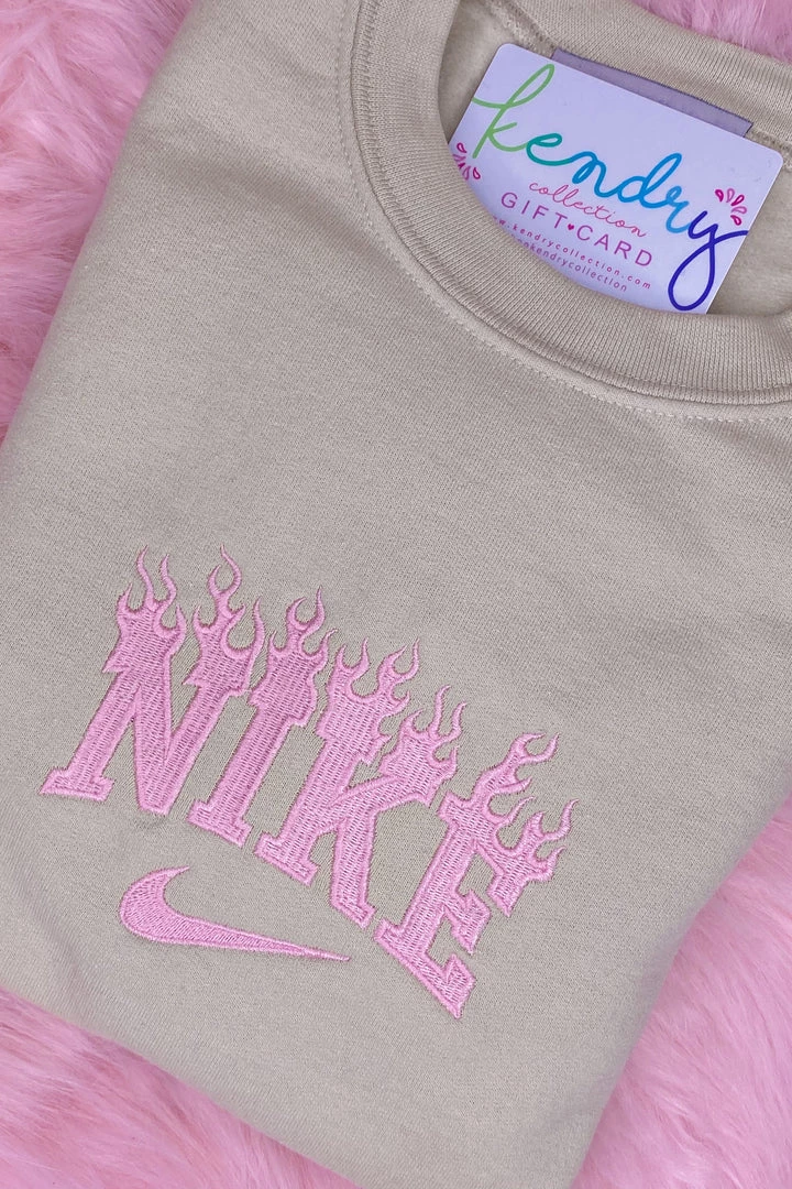 Vintage Distressed Women’s Clothing Pink And Tan Flame Burns Crewneck Sweatshirt