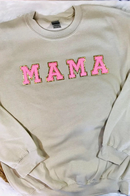 Weekndr Tan And Pink Mama Letter Patch Crewneck Women’s Clothing