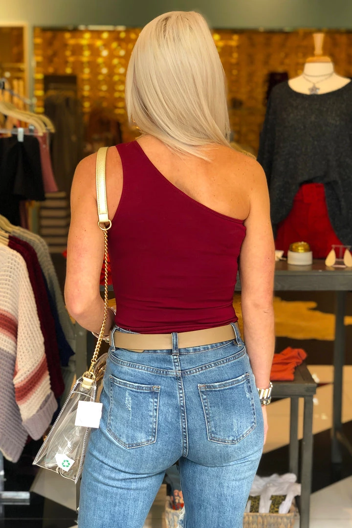 Cute one shoulder bodysuit with a very thick stretchy fabric that feels very similar to Spanx! Complete with snap buttons on the bottom. Great for game days!